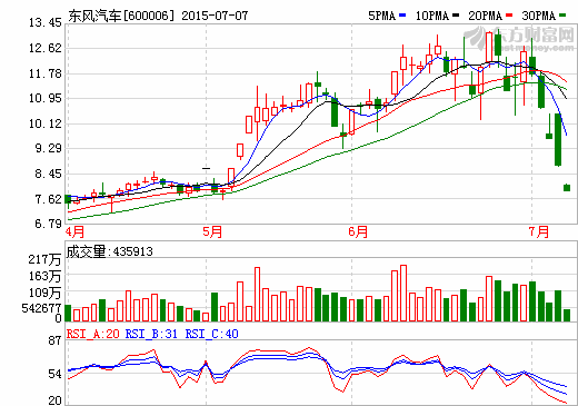 7日新能源汽車概念股盤后統計 東風汽車跌停