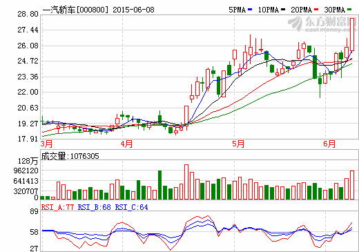 8日新能源汽車概念股盤后統計 一汽轎車漲停...