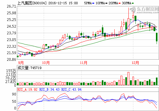 15日新能源汽車概念股盤后統計 上汽集團跌幅4.76%