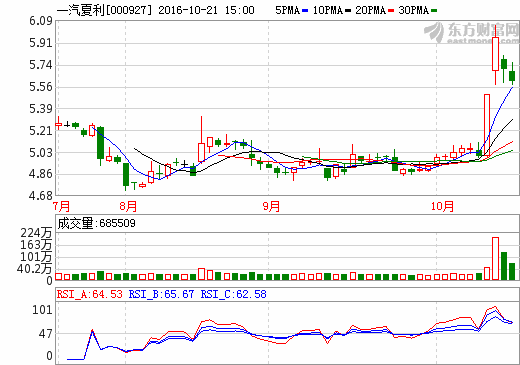 21日新能源汽車概念股盤后統計 一汽夏利跌幅1.75%