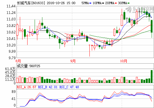 26日新能源汽車概念股盤后統計 長城汽車跌幅4.59%