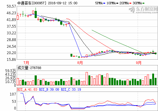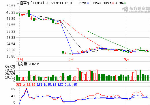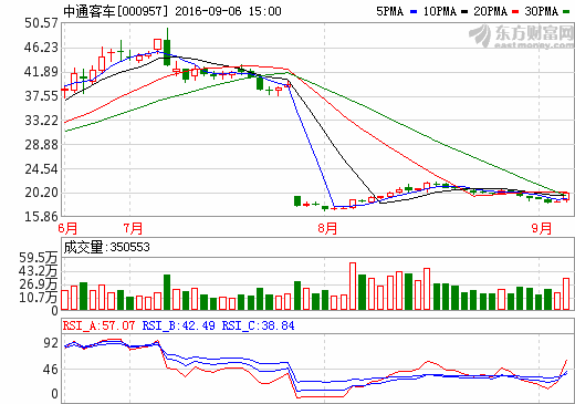 20日新能源汽車概念股盤后統計 中通客車跌幅1.89%...