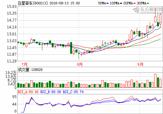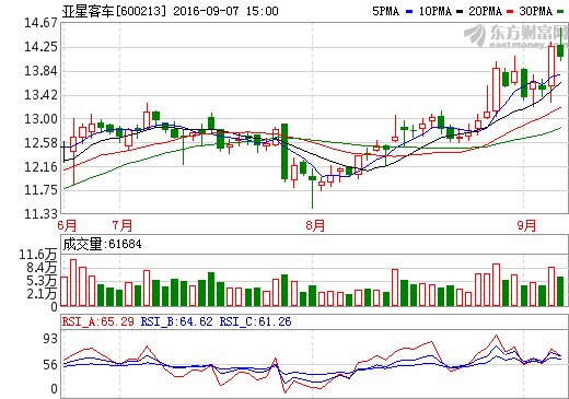 13日新能源汽車概念股盤后統計 亞星客車漲幅7.09%
