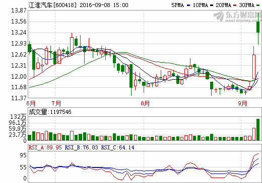 8日新能源汽車概念股盤后統計 江淮汽車漲幅4.92%