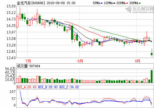 9日新能源汽車概念股盤后統計 金龍汽車跌幅7.50%