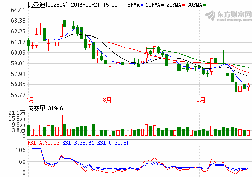 21日新能源汽車概念股盤后統計 比亞迪漲幅0.78%