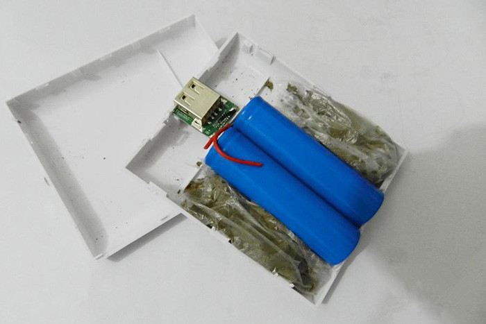 當記者打開包裝,充電寶做工相當粗糙,拆開之后發現里面是一個USB接口的小PCB,并沒有升壓/穩壓電路,兩節18650電芯和兩小塊密封在塑料袋里的泥沙占據了大部分的空間。...